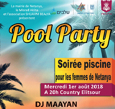 La mairie de Netanya, le Misrad Aklita et l’association SHLAVIM BEALYA présentent - Pool Party