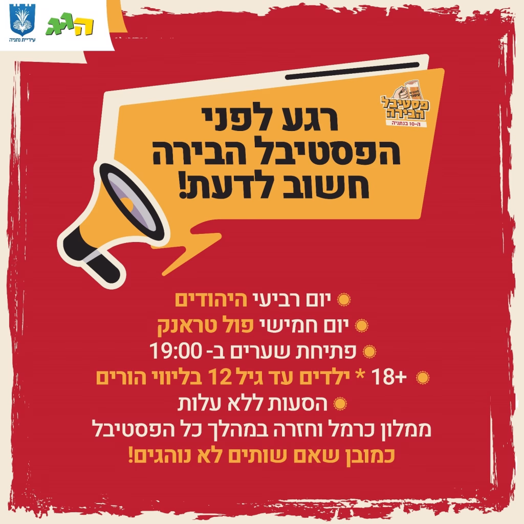 הסעות ללא עלות ממלון כרמל וחזרה בכל שעות הפסטיבל